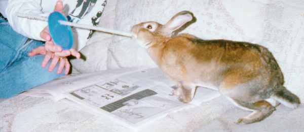 He's smart, already learning to be a good table rabbit. Here he enjoys the Lake