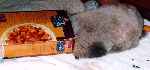 he's lazy and hungry, he'll lay next to his dish and eat only what he can