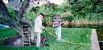 Joe maneuvered the gator over to a nearby embankment and hooked the line