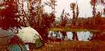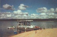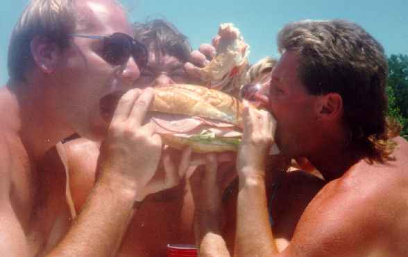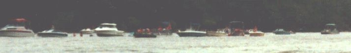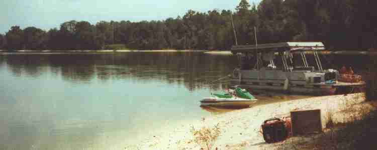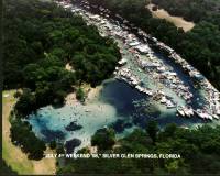 Click on this picture of Silver Glen Springs during July 4, 1998. This is only a portion of the gigantic spring run. The spring head is on the lower left and flows south then turns East. Check out all the houseboats. A public day-only park is on the lower left side and private property on the upper right. Police usually hang out at the mouth to keep an eye on all the party-goers.