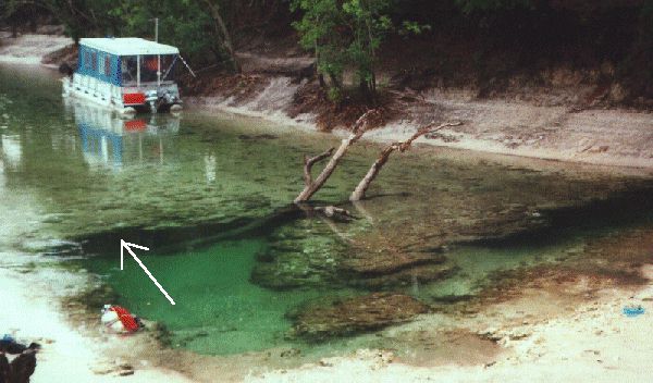 There are dozens of spring heads, some deep enough for diving. This is Fanning Springs,
